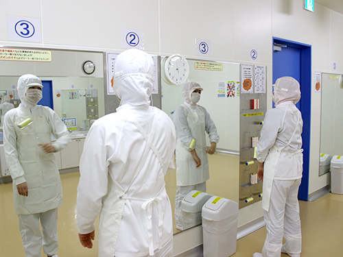 入退室管理と各工程での作業スペース区画をマニュアルによって明確にし、人為的なミスであるヒューマンエラーによる事故防止も徹底。外部機関によるライン内の洗浄、管理も実施しております。